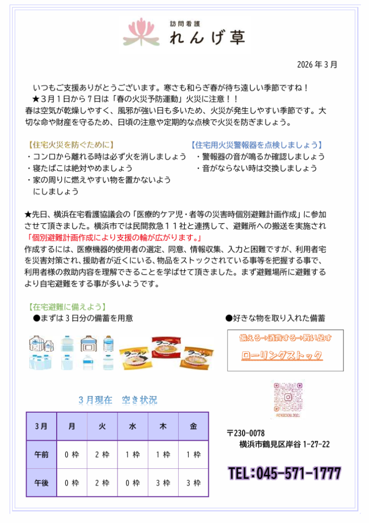 今月のれんげ草だよりは、『火災予防』についてです。